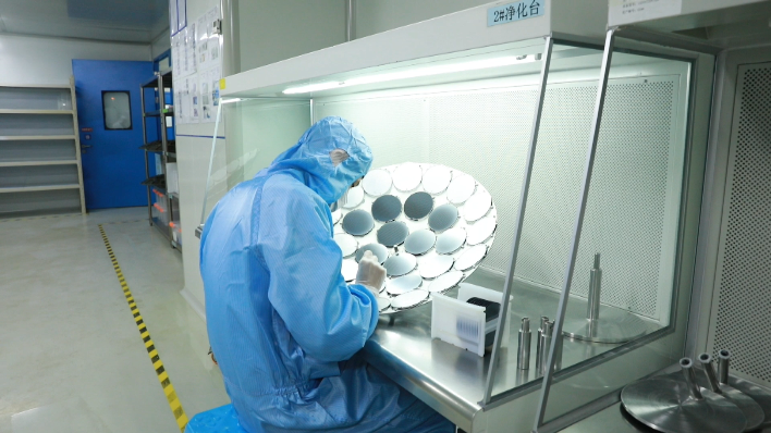 在無塵車間里,機(jī)器一刻不停運(yùn)轉(zhuǎn)著,操作人員正在進(jìn)行裝片。